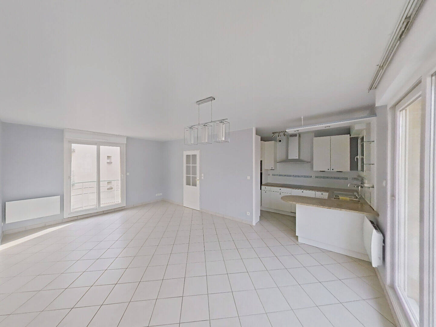 Appartement comprenant un hall d'entrée, une pièce de vie lumineuse, une cuisine entièrement aménagée et équipée, deux chambres avec placard, une salle de bain, deux balcons et un WC.